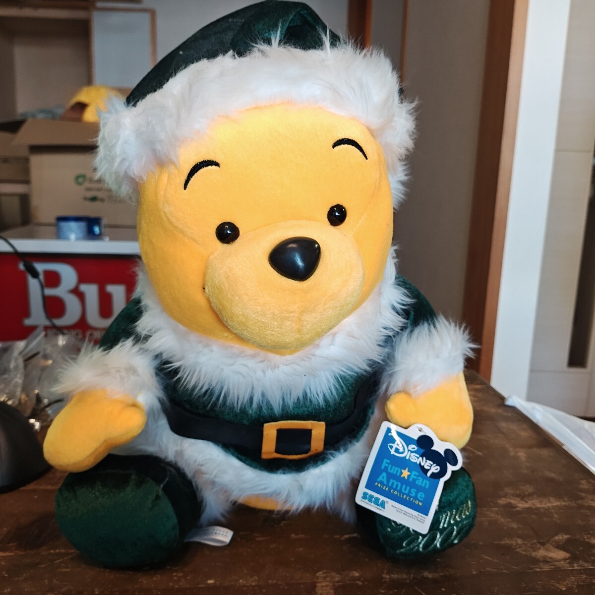 - 93037 日本古風堂 プーさん サンタクロースぬいぐるみDX 緑 全長40cm