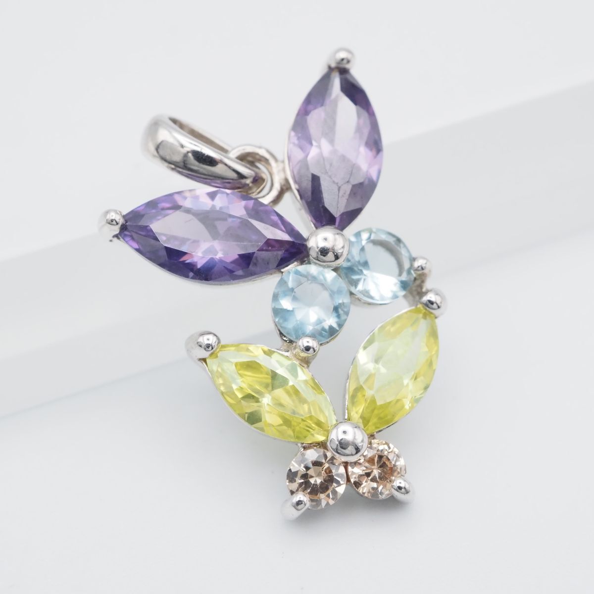 - F938 アメジスト ペリドット 等 カラーストーン 925刻印 ペンダント トップ 蝶 バタフライ デザイン シルバー チャーム ヘッド