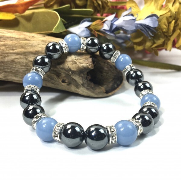 - ヘマタイト×エンジェライト パワーストーン ブレスレット 天然石ブレス (シルバー) 10mm メンズ・レディース 健康運 勝利 還暦祝い