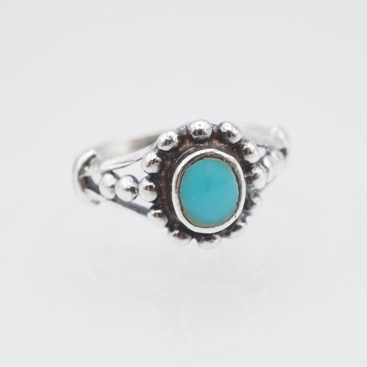 - F808 ターコイズ風 SILVER925刻印 リング インレイ デザイン シルバー 指輪 ヴィンテージ 9号
