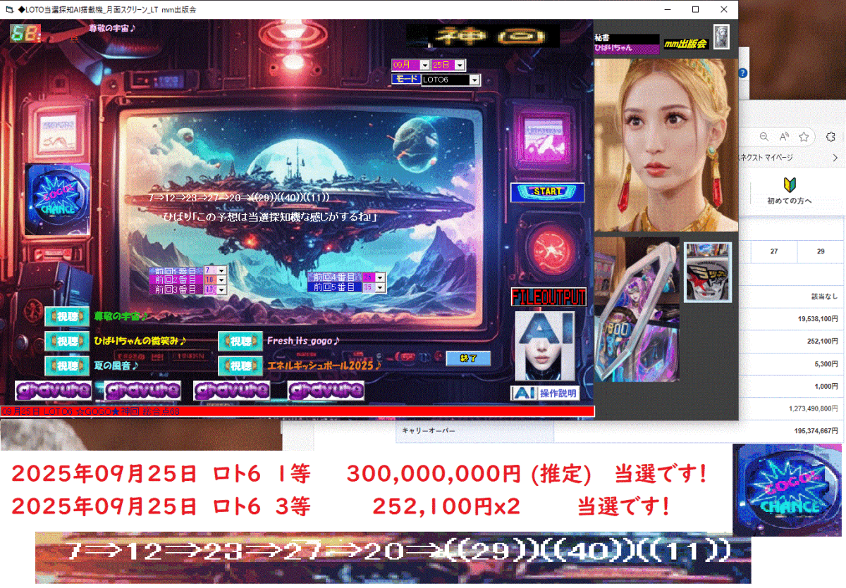 新作 [◆LOTO当選探知AI搭載機_月面スクリーン_LT] 2025年09月25日 ロト6 1等 300,000,000円 (推定) 当選!人気商品