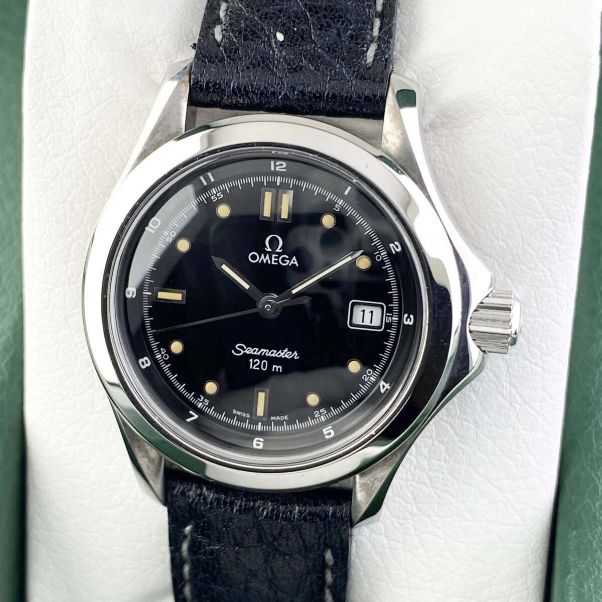 > 【1円箱付】OMEGA オメガ 腕時計 レディース SEAMASTER シーマスター 120m ブラック文字盤 ラウンドフェイス デイト 可動品