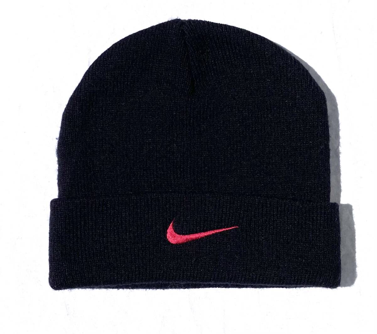 - 90s NIKE 黒 赤刺繍 アクリル キャップ ビーニー ニットキャップ