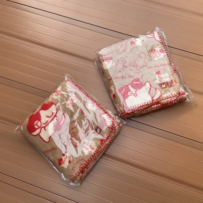 - 新品!2枚セット 980円nyanderful life犬と猫キャラクターフリースブランケット日用雑貨