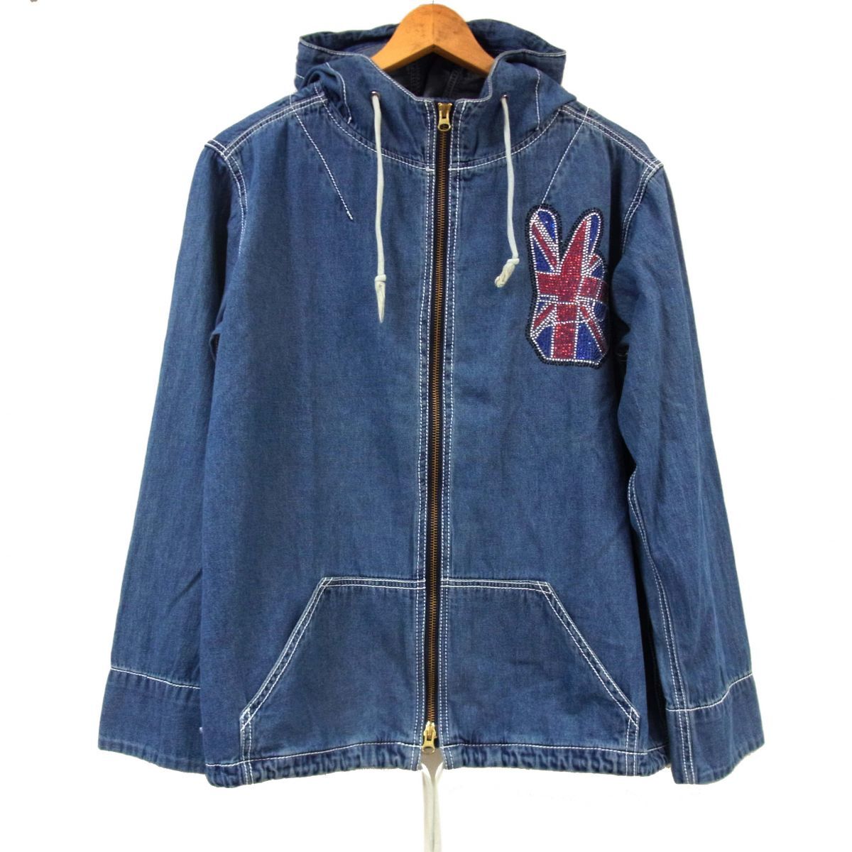 - 新品◆HALF MAN ハーフマン ジップジャケット パーカー ラインストーン インディゴ USED加工 メンズ 春秋物