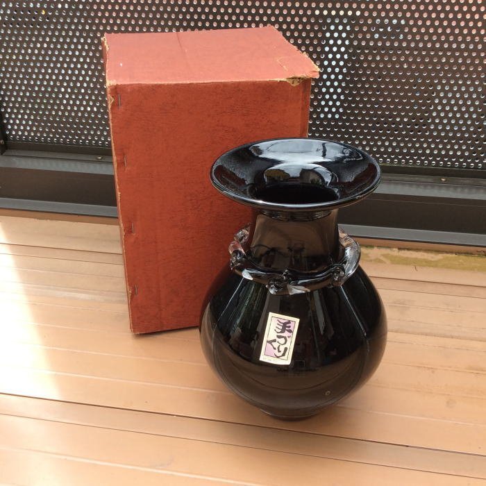 - 【新品】1500円 金彩模様黒手作り花瓶 花器、花瓶 正月用品
