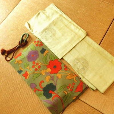 - 掘り出しました!正絹14000円紬菱文袷小紋3点セット お稽古着 着物 美品