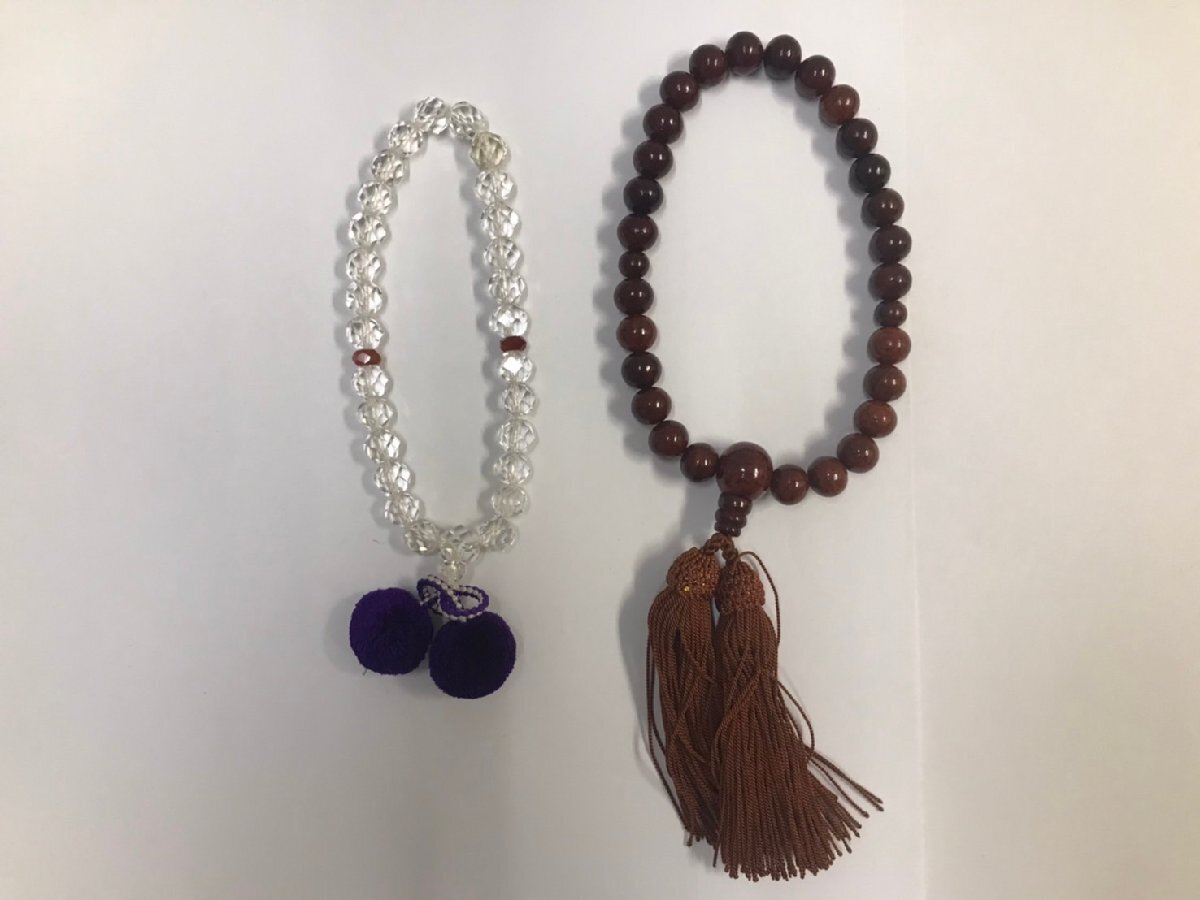 - 1円~【2点セット】【保管品】【水晶 念珠 御念珠】【栴檀 人頭房 念珠 御念珠】数珠 冠婚葬祭