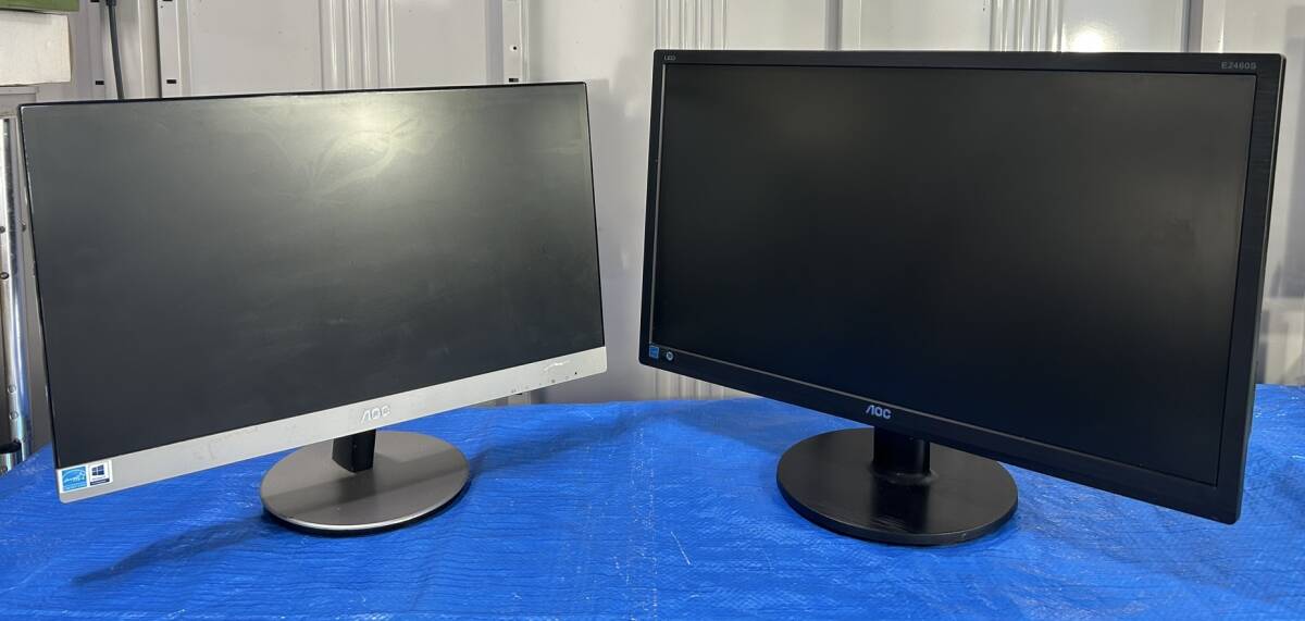 > 【まとめて売り モニター2台】AOC製モニター 液晶 2台 20インチ 19インチ ※通電確認済み。19インチ液晶はジャンク品です。
