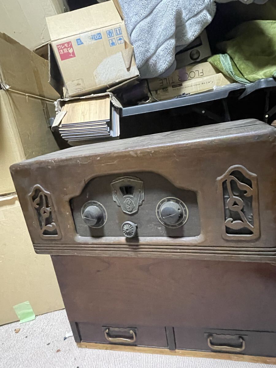 - アンティーク 真空管ラジオ 青島無線工業製? 木製キャビネット 昭和レトロ 現状品