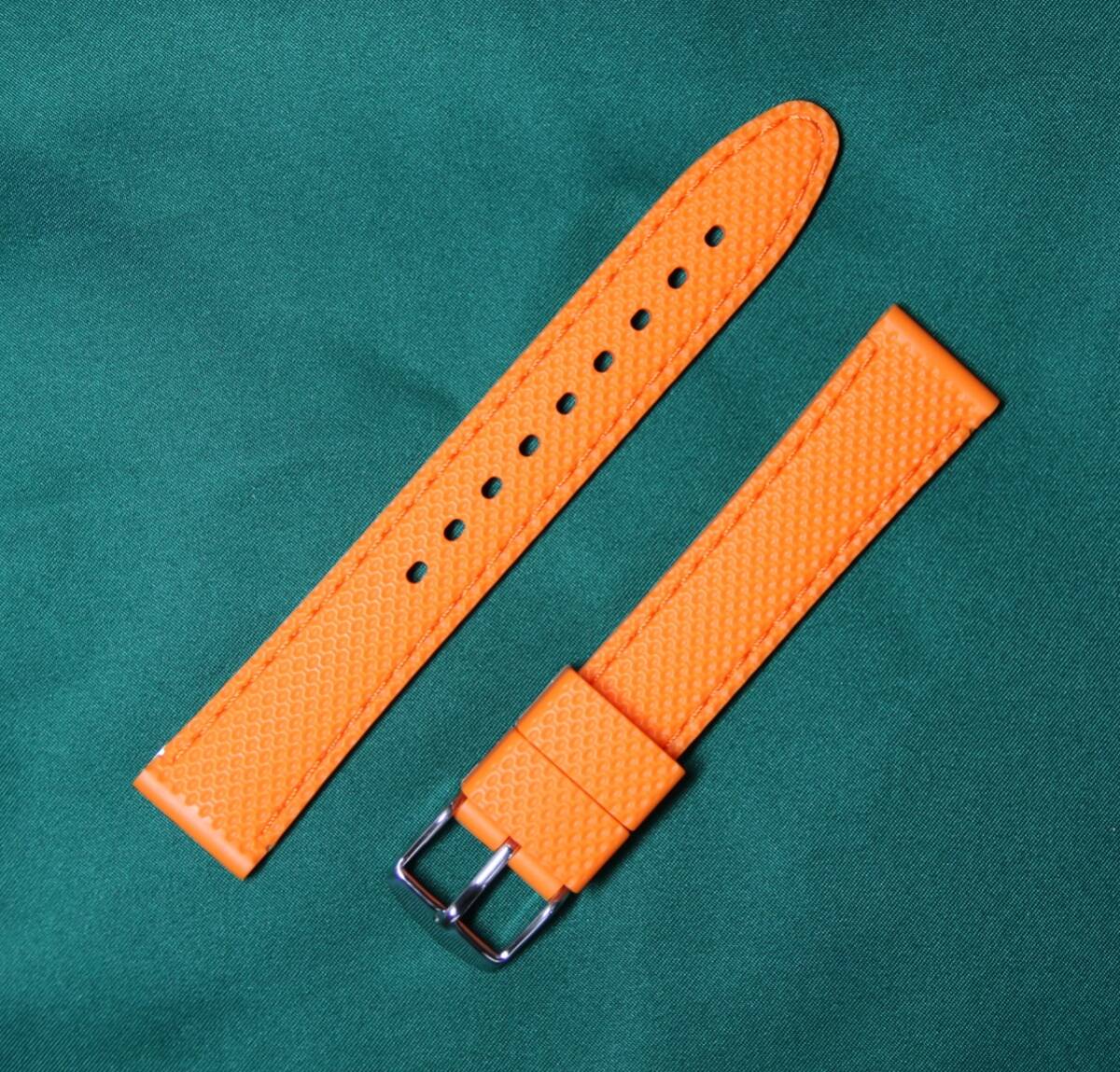 - 18mm シリコンゴム ラバー オレンジ・橙色 オレンジステッチ入 SS銀色尾錠 スクーバ ダイバー サーフィン 新品