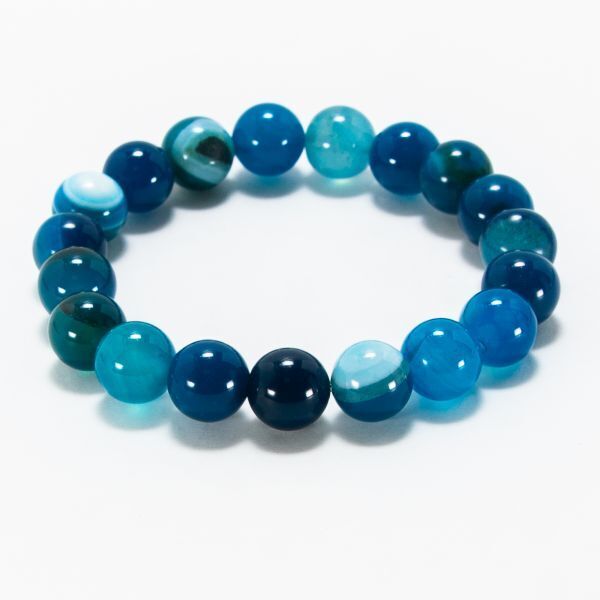 - ブルーアゲート 青色瑪瑙 内径16cm10mm珠 未使用品