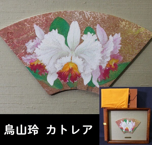 - 【真作】 鳥山玲 「カトレア」 日本画 岩彩 扇面 女流人気作家 師 平山郁夫 D758