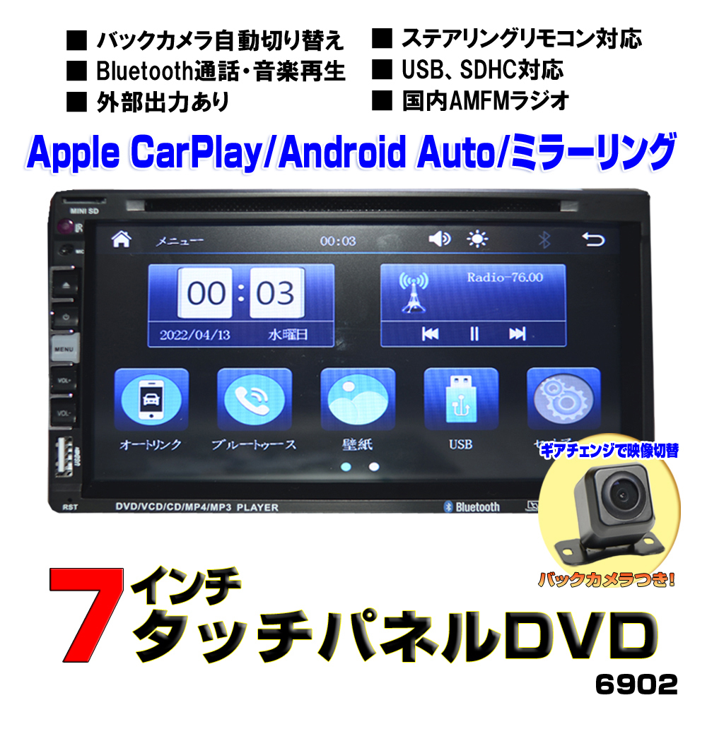 - Apple CarPlay Android Auto ミラーリング ブルートゥース 外部入力USB SD動画、音楽 車載DVDプレーヤー+170度バックカメラセット[D58c