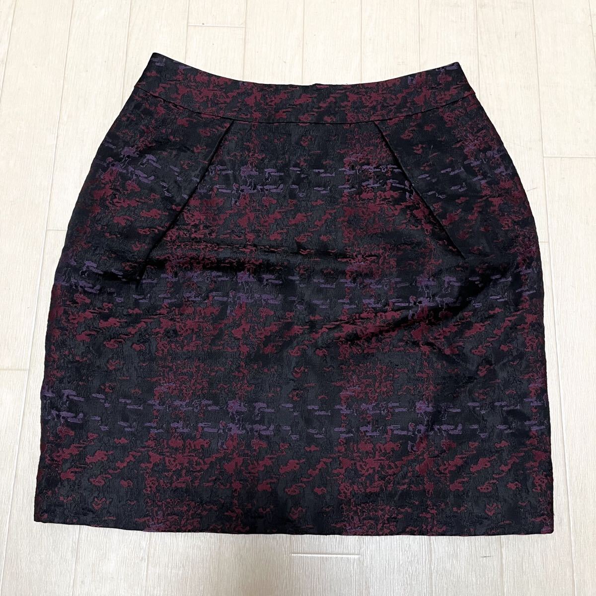 > 和850★ ANAYI アナイ タイトスカート 膝丈ほど 総柄 38 ブラック ボルドー 日本製 レディース
