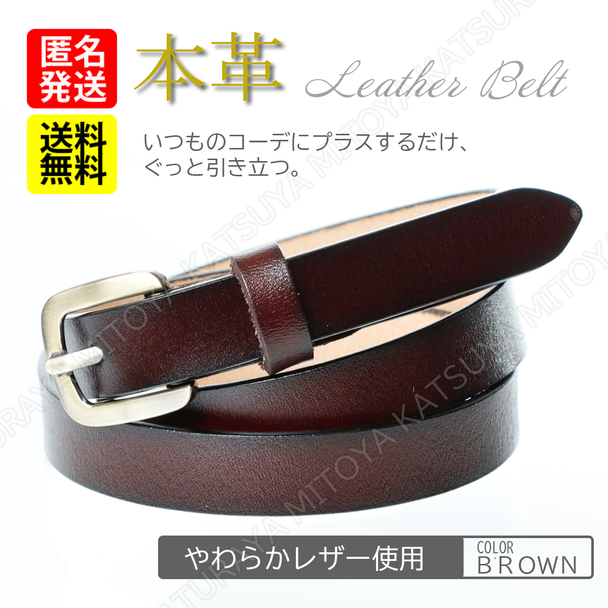 - 本革 レディース ベルト 細ベルト★ブラウン★細い 細め 牛革 レザー カジュアル シンプル スマート 大人 フォーマル 長さ調節 調整a209