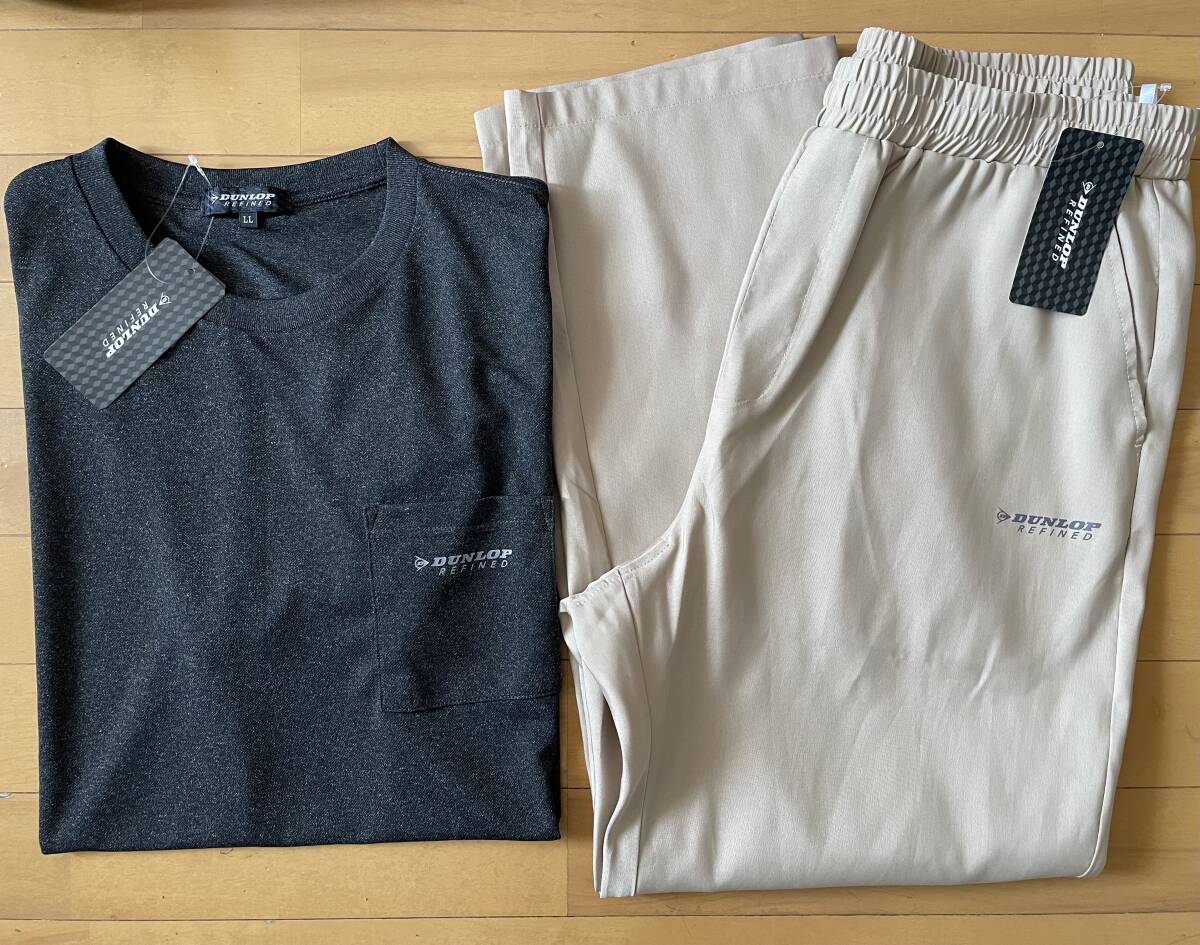 - 送料無料 新品未使用 DUNLOP(ダンロップ DUNLOP REFINED) LL 半袖Tシャツ(黒)・撥水ロングパンツ(ベージュ) 上下 即決