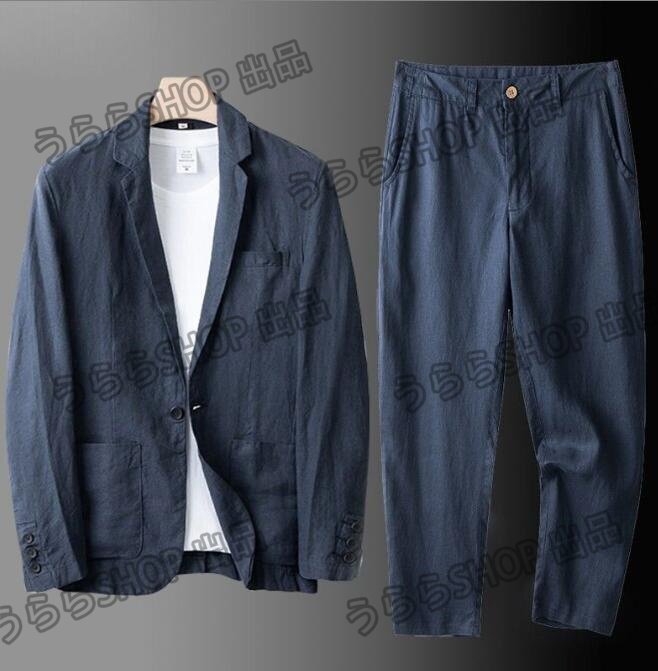 - 人気推薦上質メンズ スーツセット セットアップ テーラードジャケット テーパードパンツ 上下2点セット 綿麻風 麻色 SIZE:XL xhw0161.3