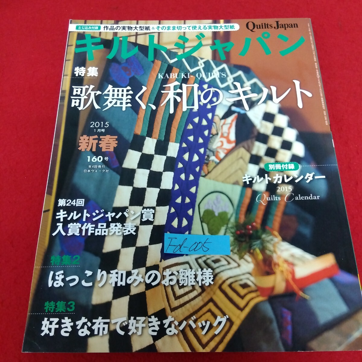 - Fd−005/キルトジャパン 2015年1月新春号(160) 実物大型紙付き (別冊付録なし) 歌舞く、和のキルト ほっこり和みのお雛様/L8/71001