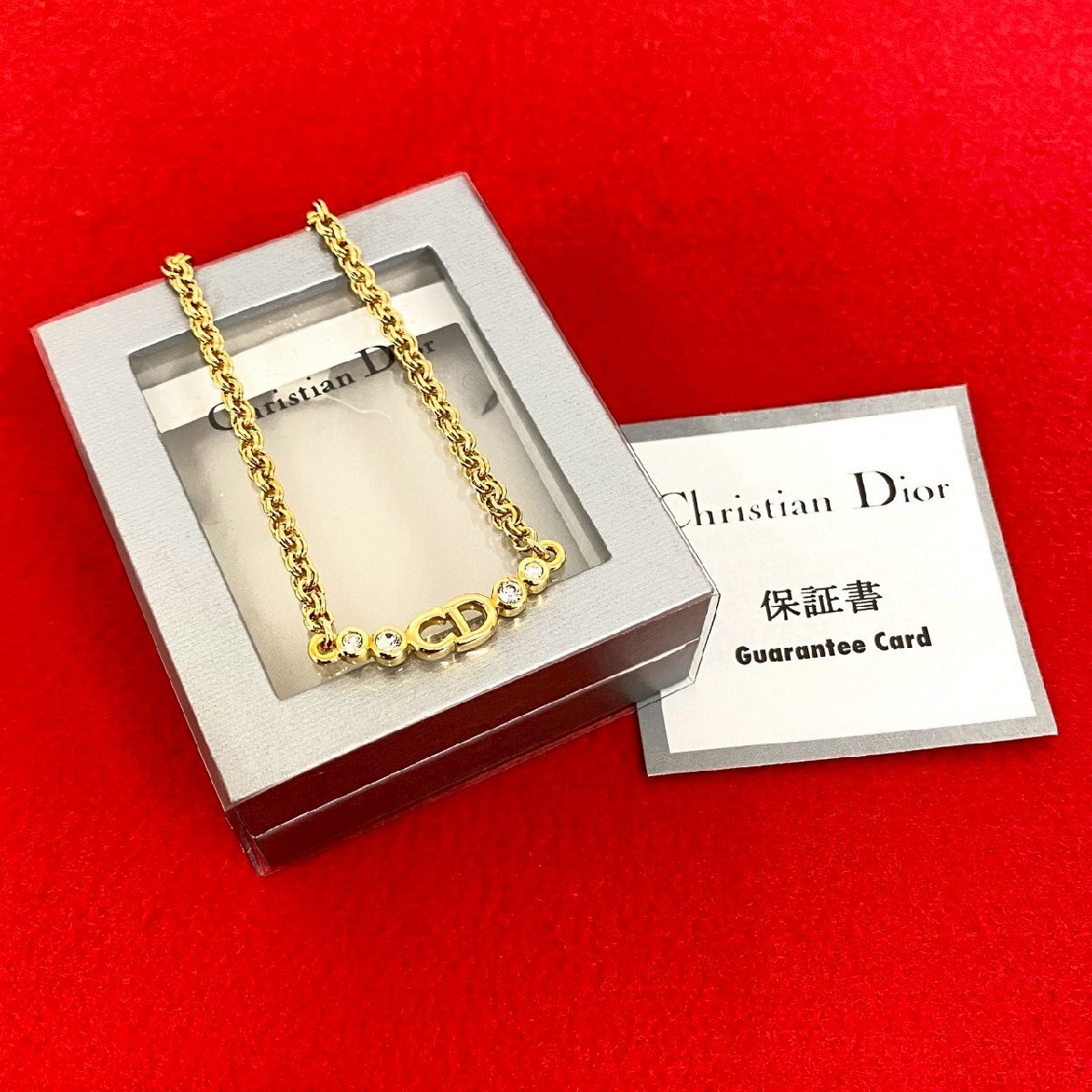 - 極 美品 保存箱付 Christian Dior ディオール CD ロゴ ビジュー モチーフ GP ネックレス チョーカー アクセサリー ゴールド 97718