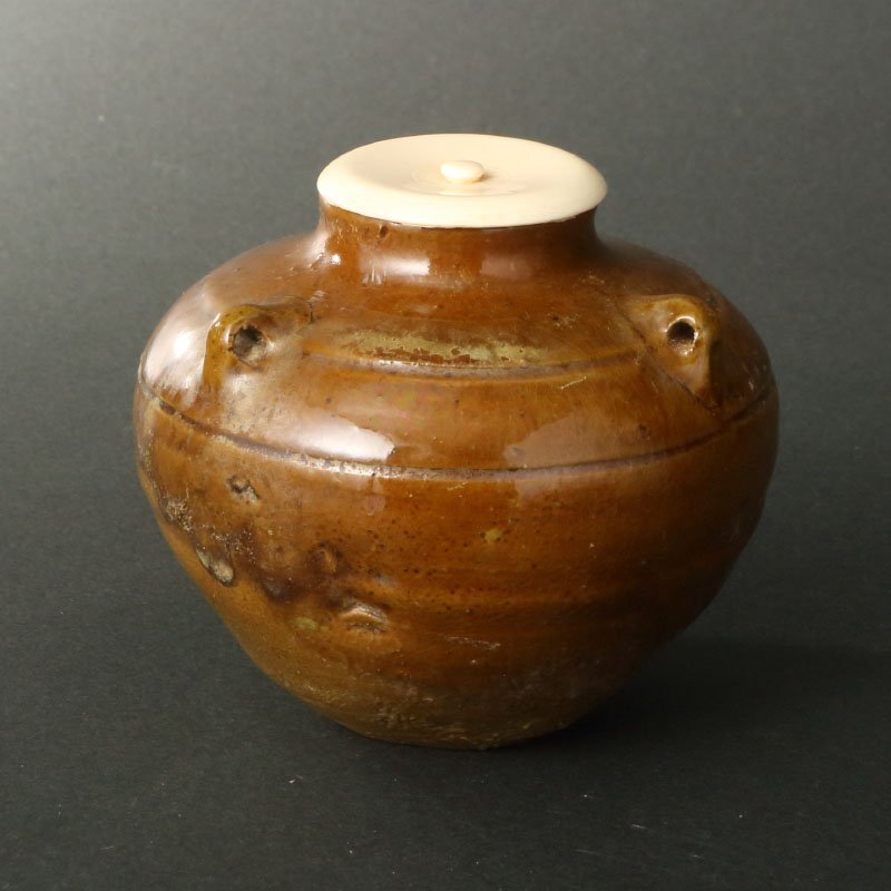 - 委託HK◇時代 唐物三耳茶入 ※仕覆添え(茶道具 陶磁器 陶芸 中国 朝鮮 李朝 宋 唐物 茶器 棗 抹茶 濃茶 耳付 茶杓 茶事 点前 古物 骨董)