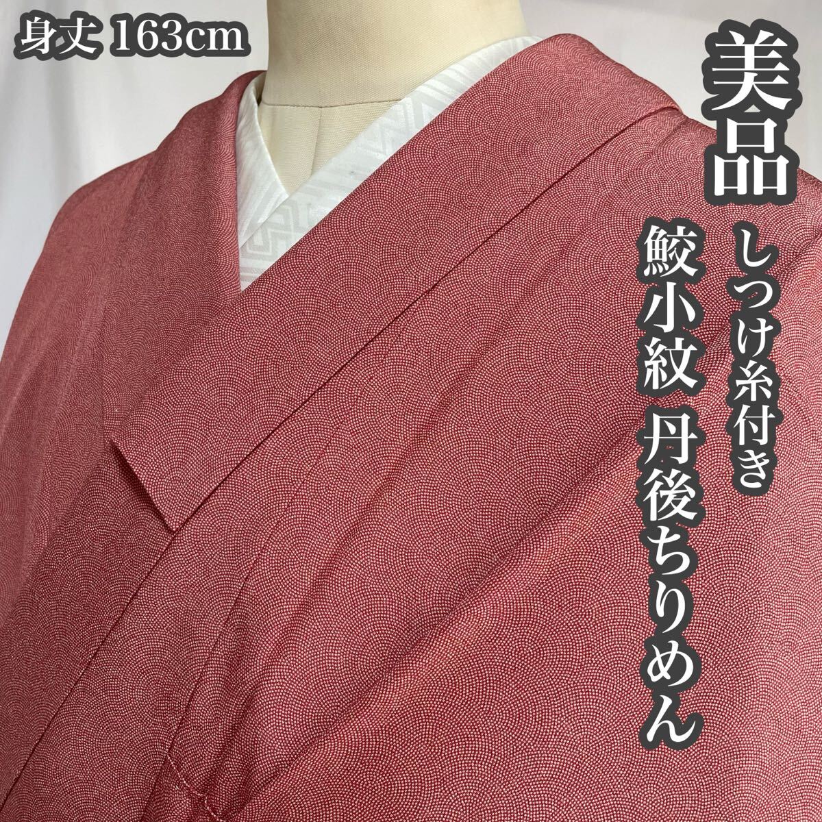 > #G128 美品 しつけ糸付き 江戸小紋 鮫小紋 丹後ちりめん 縮緬 正絹 身丈163cm 和装 和服 着物【wellriver】