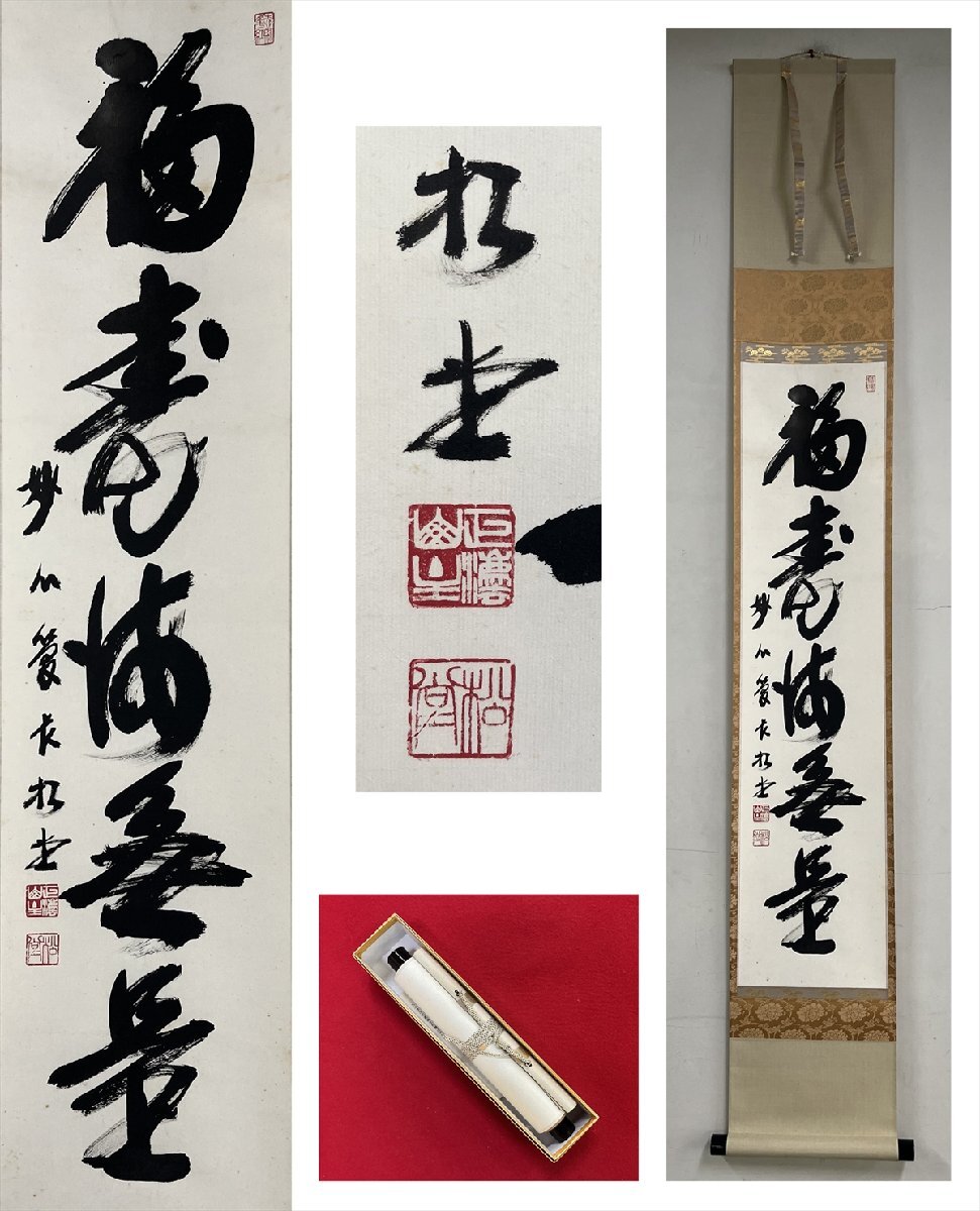 > 【千寿】妙心寺 倉内松堂 福寿海無量 自筆 一行書 紙本 a956◆在銘 紙箱 茶掛 掛軸 掛物 茶道具 同梱可 条件有 100027894