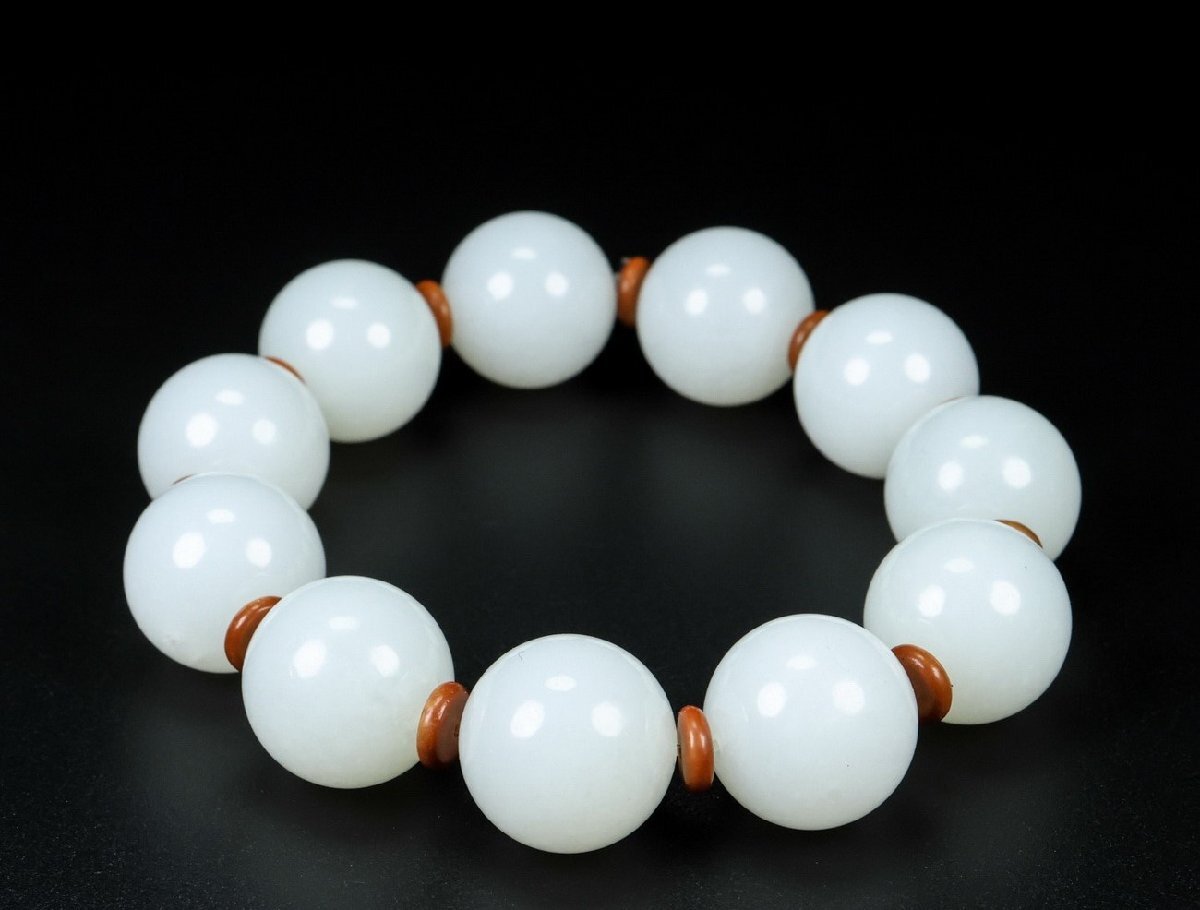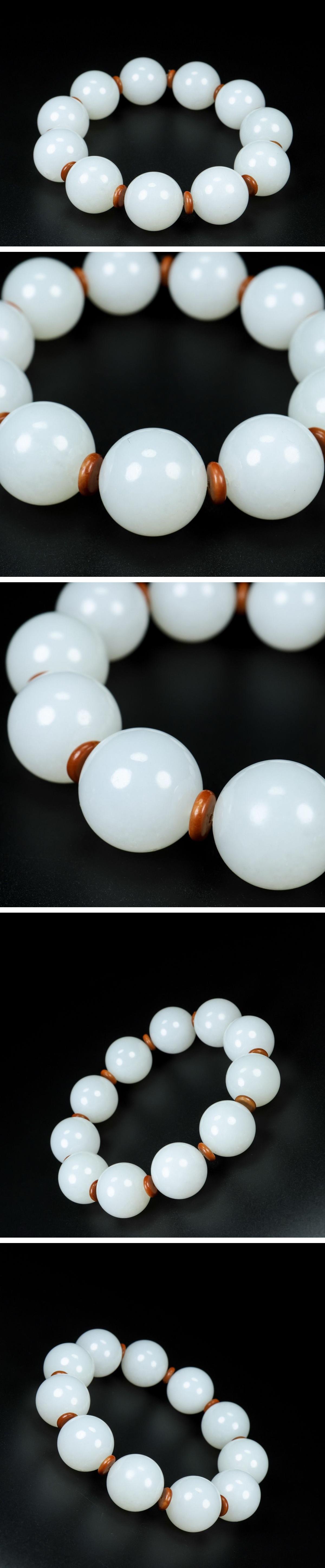 > 【清】某収集家放出品 清時代 和田玉 白玉手串 数珠 材質保証 当時物保証 中国伝来 当時物保証 古美術 骨董品7L9-DE9