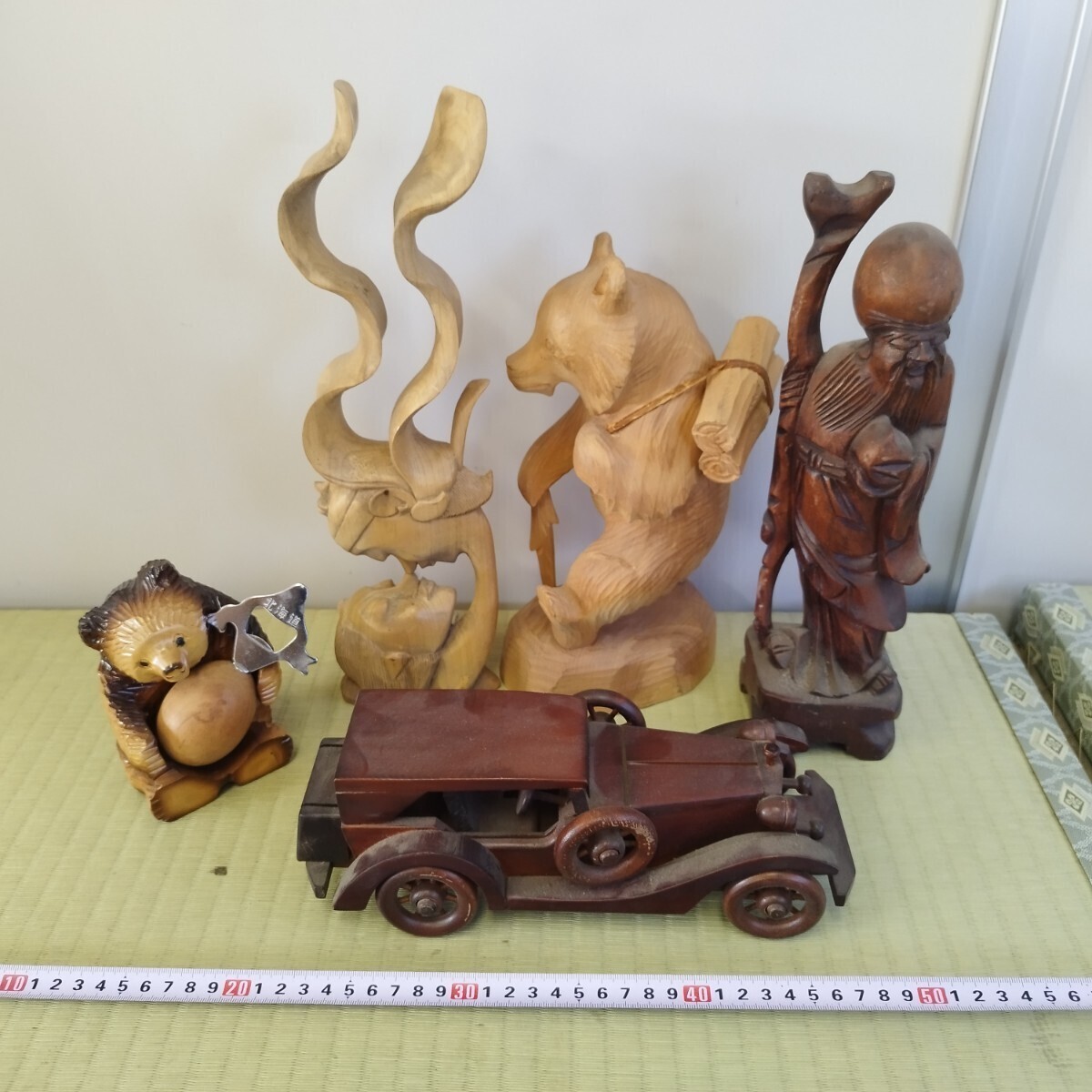 - 戸06d 木彫り 置物 まとめ 熊 仏像 オブジェ 北海道 ソ連 ロシア土産 民芸品 彫刻 アンティーク コレクション 車 仏像 木製