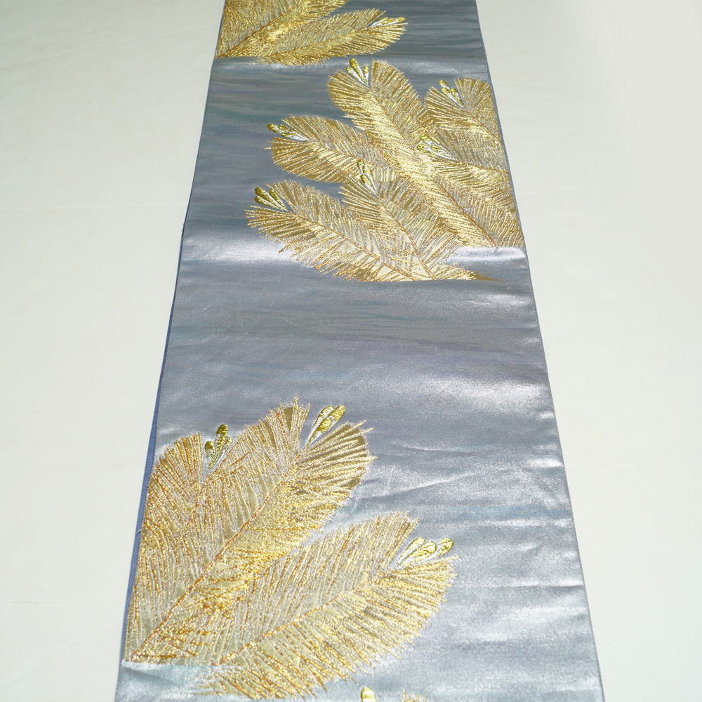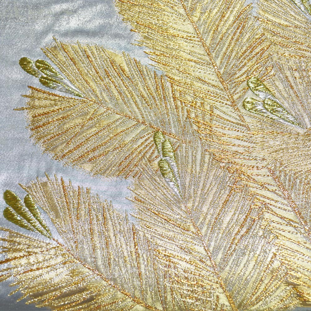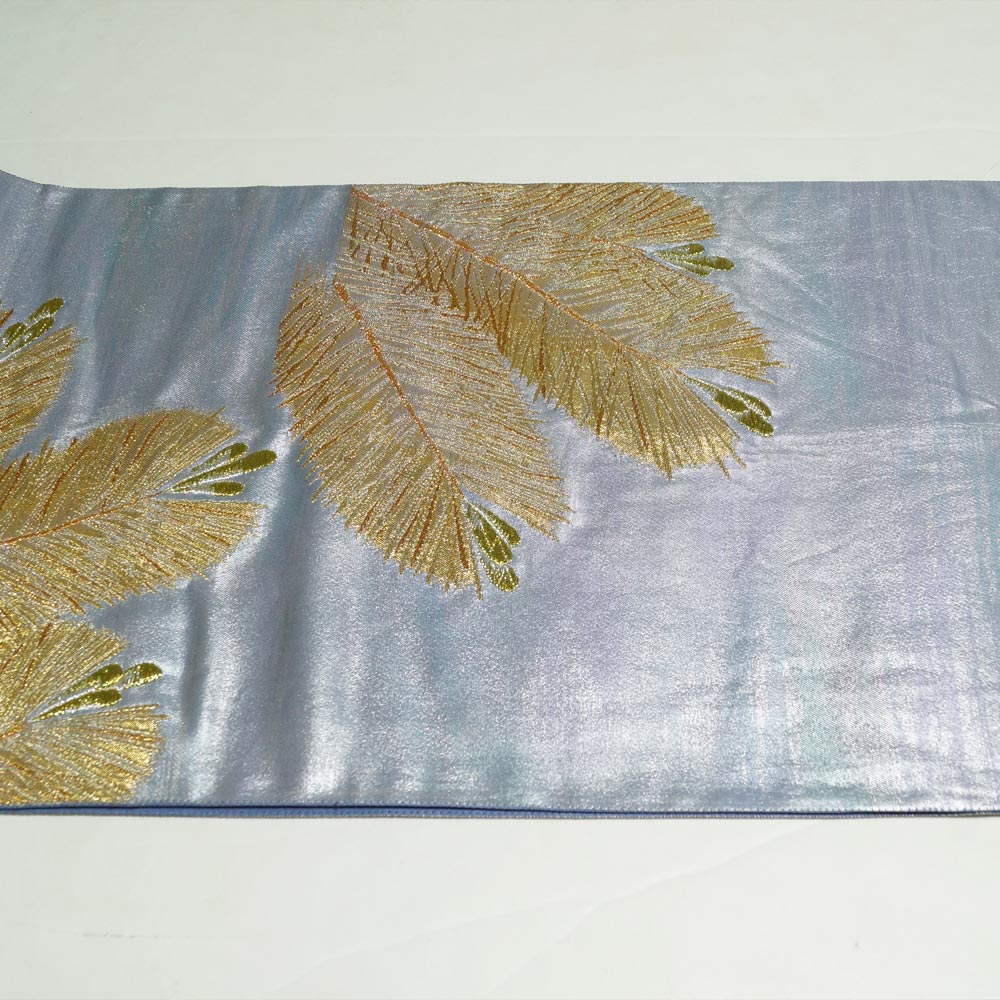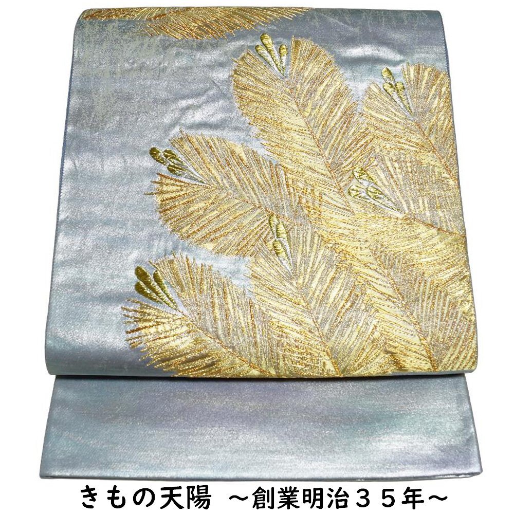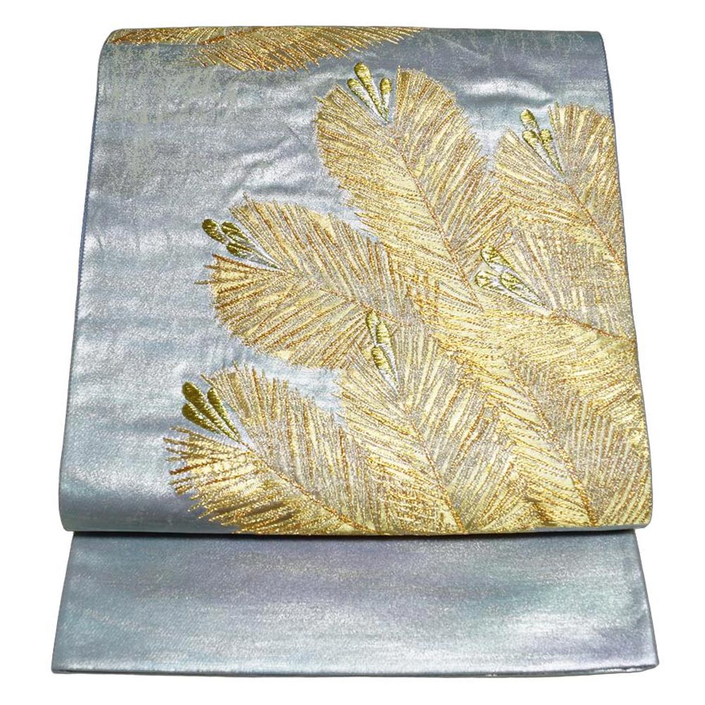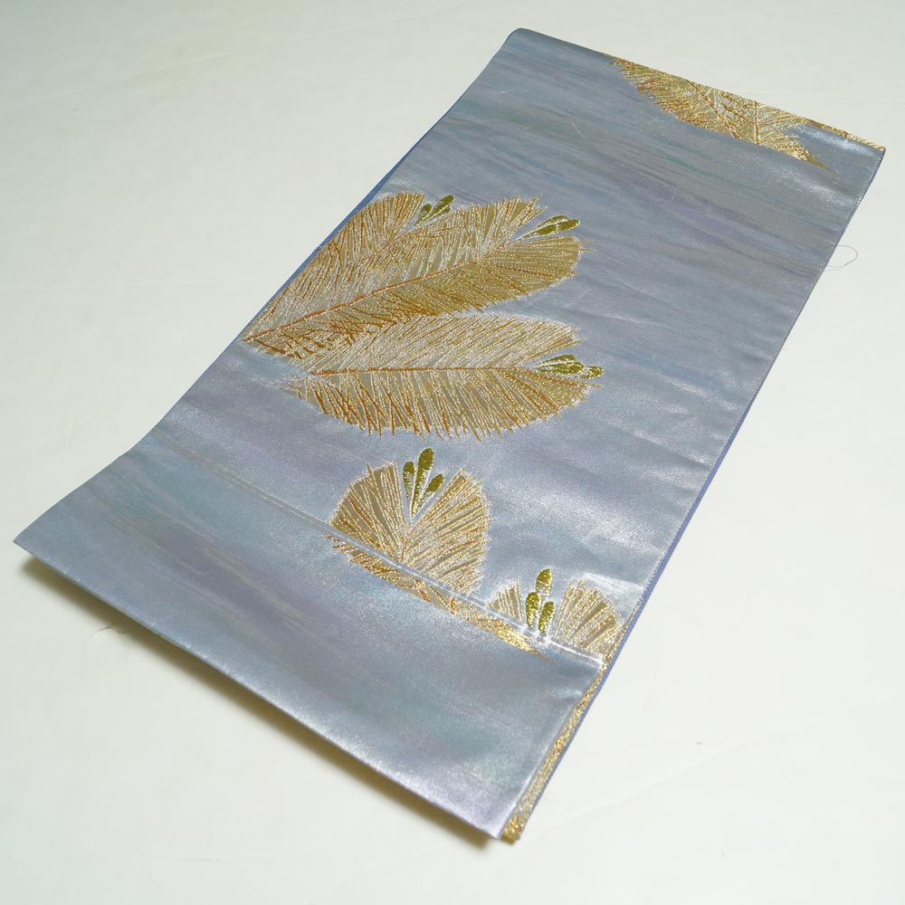 > 袋帯 銀霞に若松模様 金糸 六通柄 薄花色系 正絹 中古 リサイクル着物 帯 フォーマル 袋帯 着物 きもの天陽