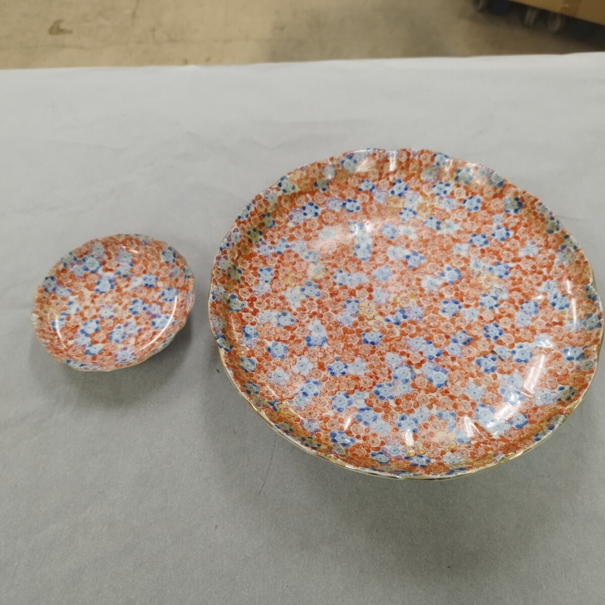 > 戸06d 有田焼 陶扇作 大皿&小皿 各1枚セット 赤取山水 陶器 金彩 金縁 梅 桜 花詰 花柄 レトロ 時代物 染付 高台