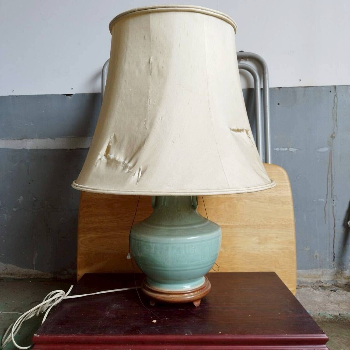 - 西A01 中国 陶器 宋磁 ランプシェード 水色 時代物 フロアランプ テーブルランプ 照明 デスクランプ インテリア アンティーク