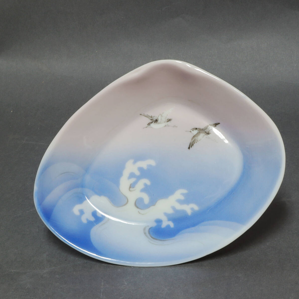 - 西浦焼 西浦円治 波千鳥釉下彩変形皿 真贋保証
