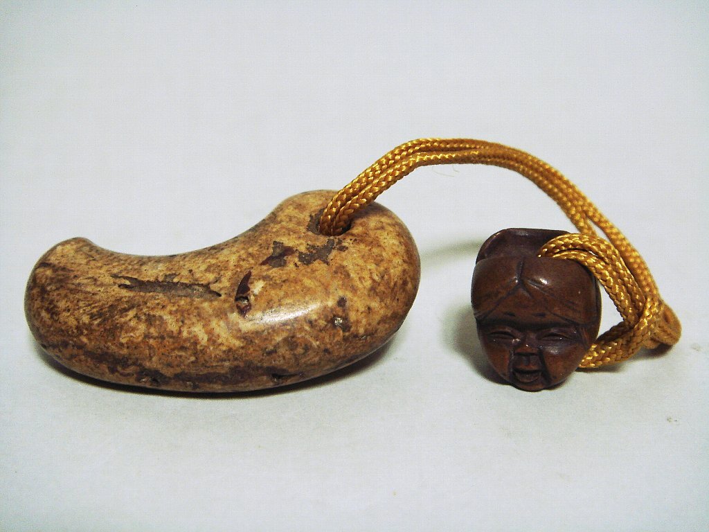 - Y075 勾玉の根付 鬼とお福さんの緒締め