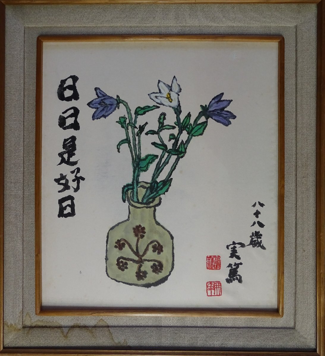 - ・作者:武者小路実篤 ・画題:日々是好日 ・技法:俳画 No-2-1-R4-10.21-85.-