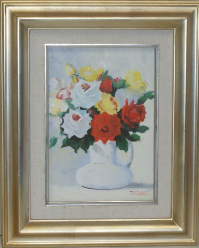 - ・作者名:田崎順平 ・画題:「白い花瓶のバラ」(油彩画) (H1-R4-6-21-45.0)