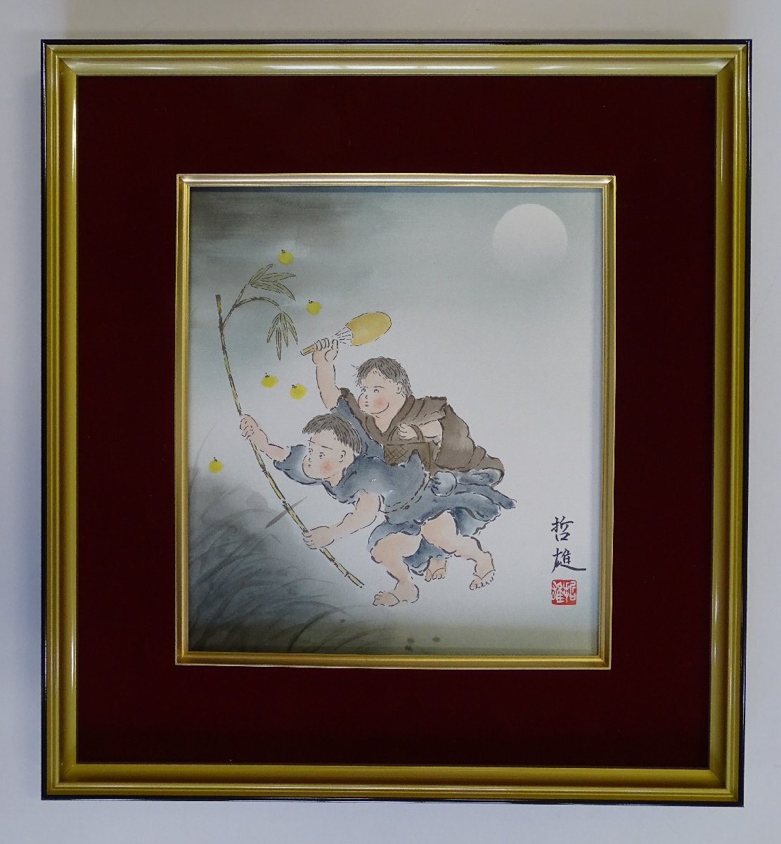 - ・作者: 柴田哲夫・画題: 蛍 ・技法: 色紙絵 (複製画) NO-6-1-12.8