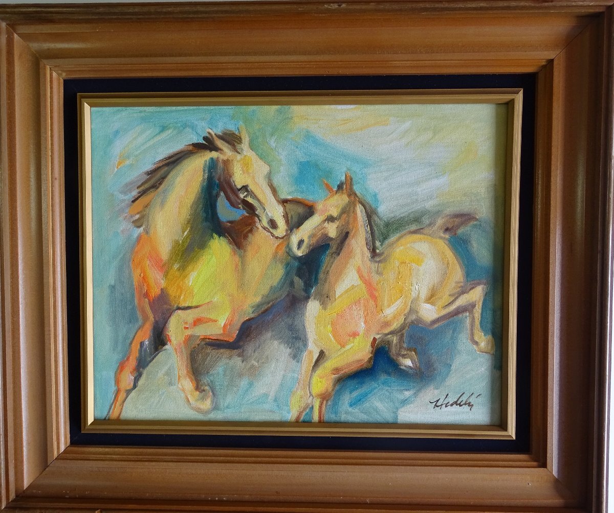- ・作者名: 坂口 日出樹 ・画題: ニ頭馬 ・技法: 油彩画(原画) B1ーETーR4ー9ー4ー85,