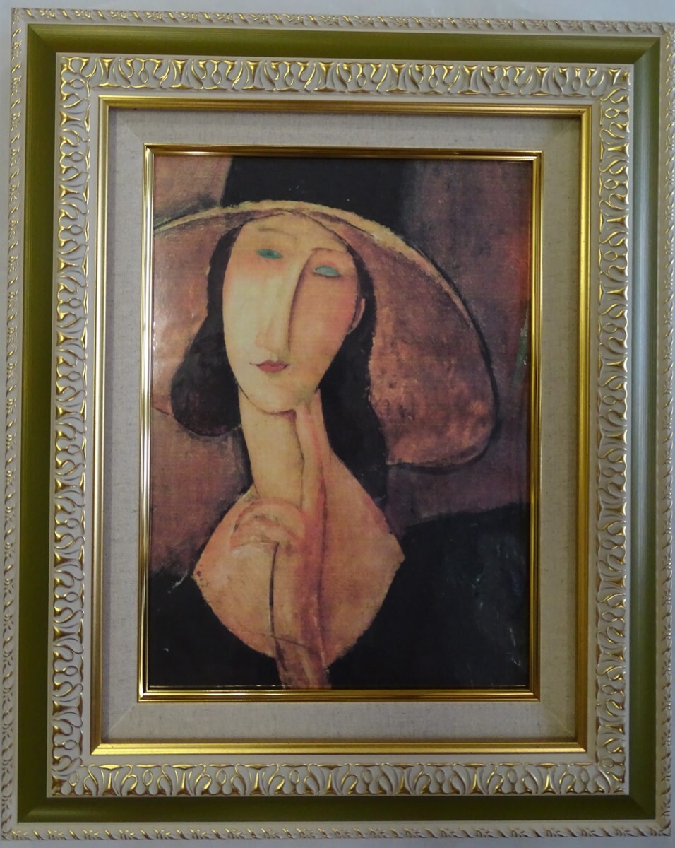 > ・作品名:・アメデオ・モディリアー ・画題:・帽子かぶったジャンヌ・エビュテルヌ ・技法:・油彩画(複製)(R4-5-19)