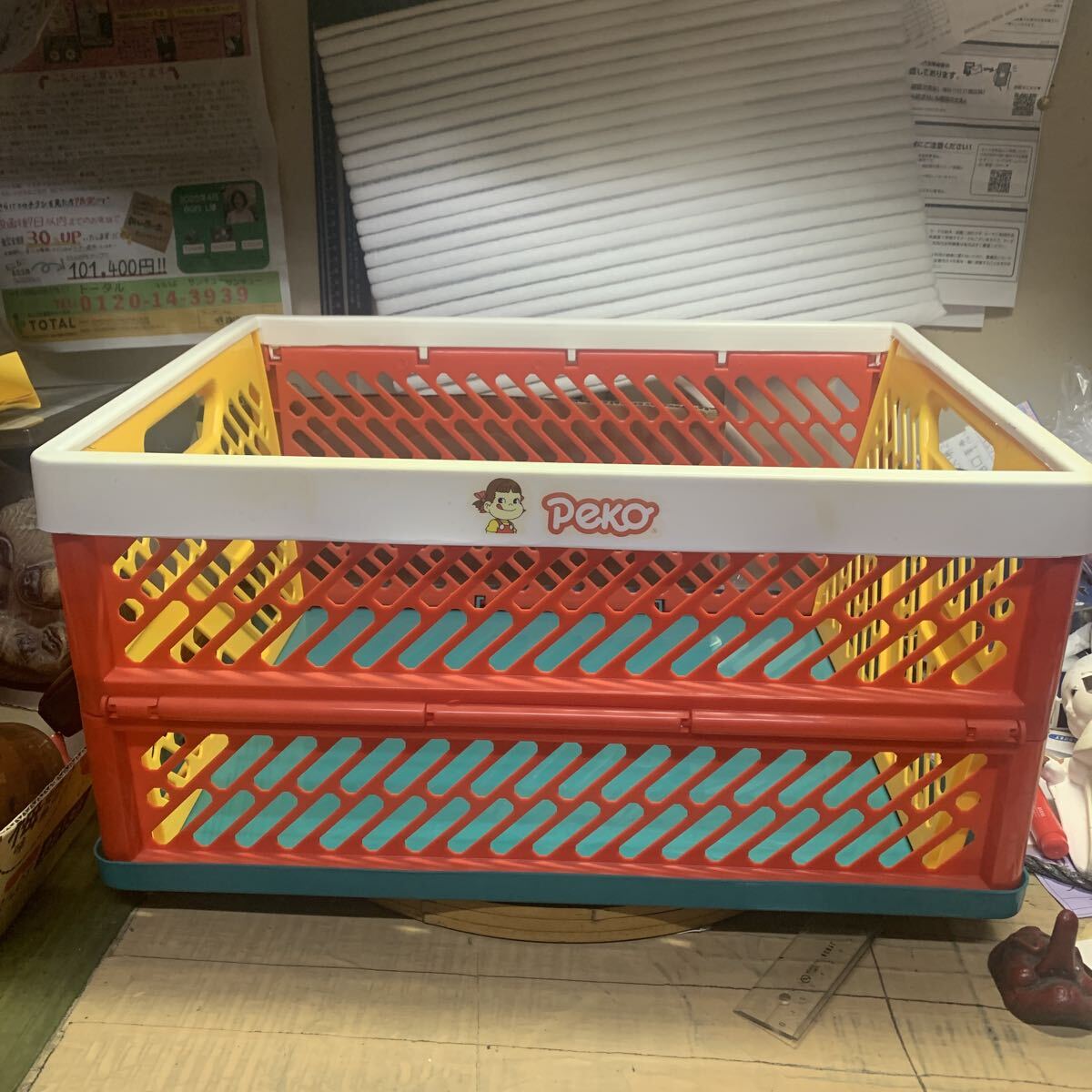 - 昭和レトロ ペコちゃん 不二家 かご 当時物 折りたたみコンテナ