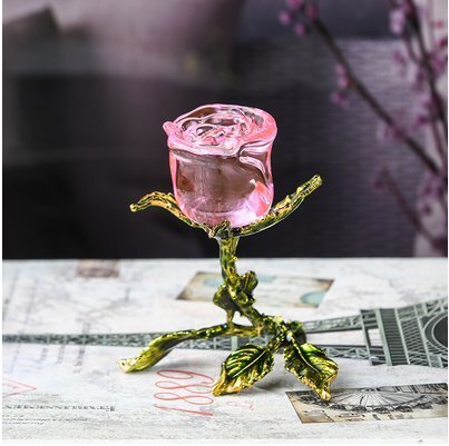【限定品】超美品水晶ピンクバラ置物1203-YS-58-9D