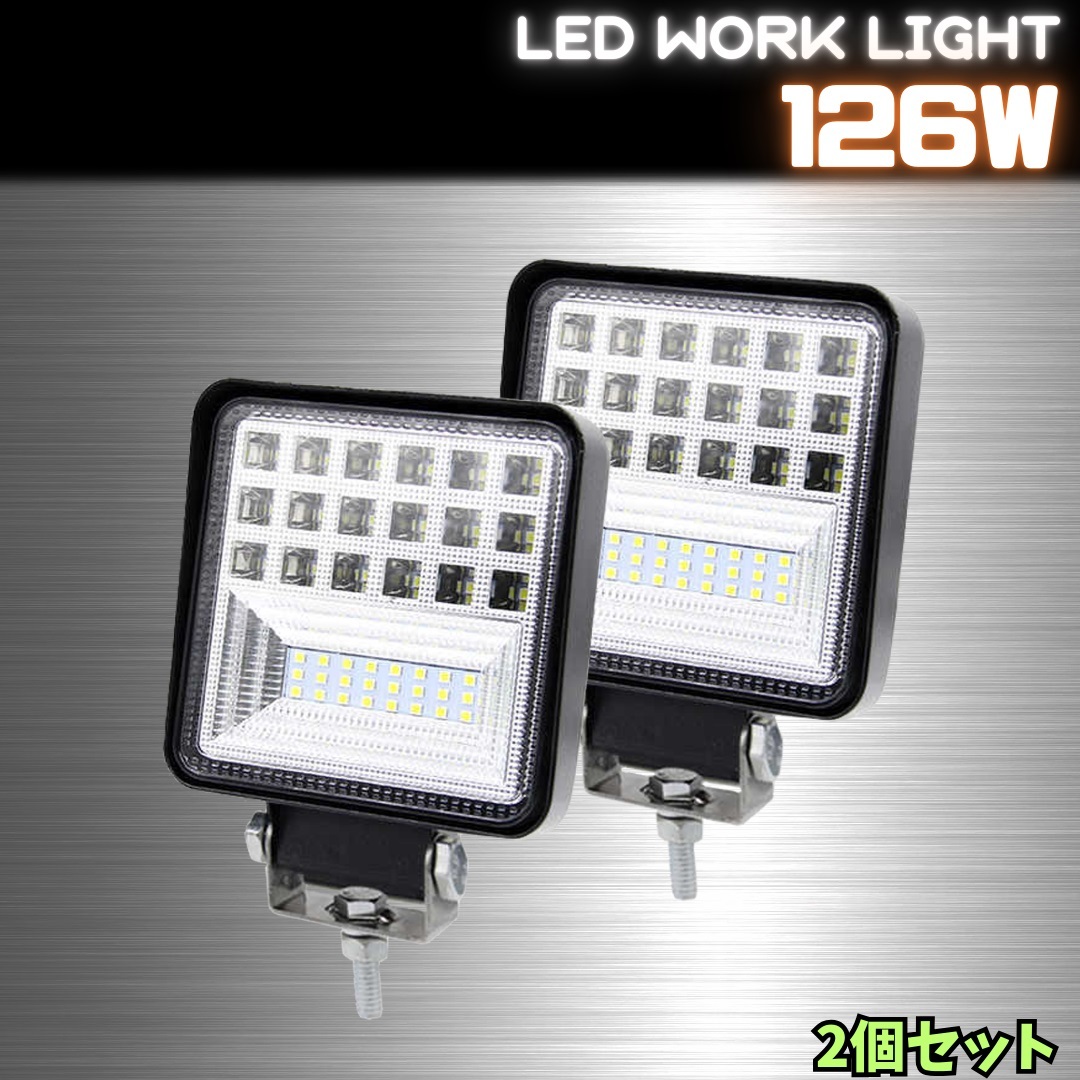 > 【2個セット】 LED ワークライト / 126W ホワイト / 12V 24V 兼用 / 作業灯 前照灯 防水 トラック 投光器 集魚灯 ランプ スポット 照明