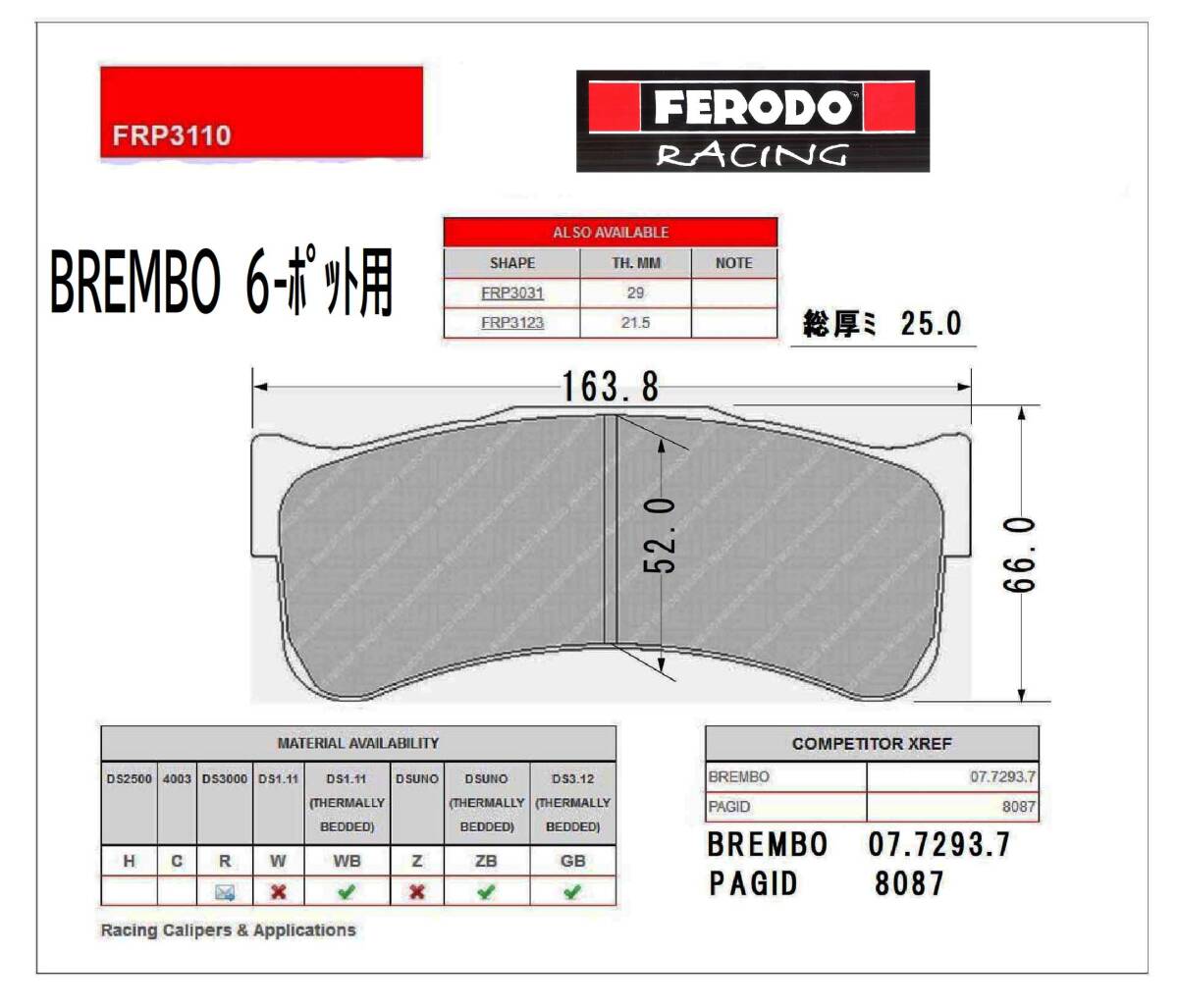 - BREMBO 6-Pistonキャリ FERODO レーシング パッド破格デ