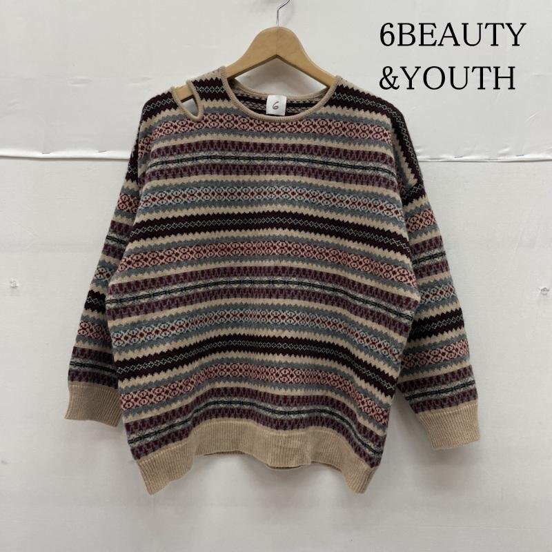 > ロク ビューティアンドユース FAIRISLE SHOULDER HOLE KNIT カシミヤ混 ドロップ オープンショルダー セーター ニット 8613-199-0063
