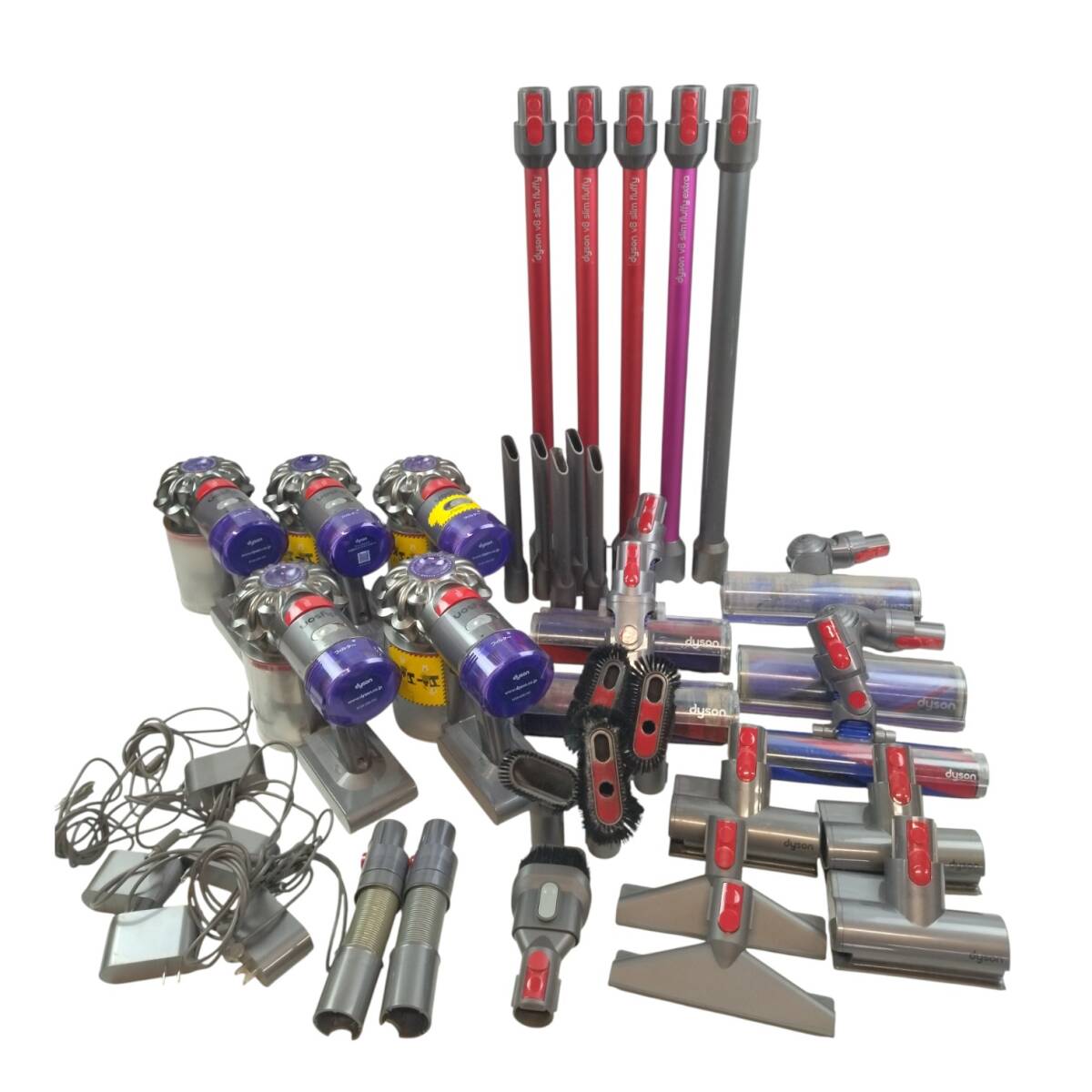 - 【9-137】★中古・動作確認品★5台まとめて ダイソン SV10K Dyson V8 Slim Fluffy コードレスクリーナー ブラシ回転OK パーツ付き