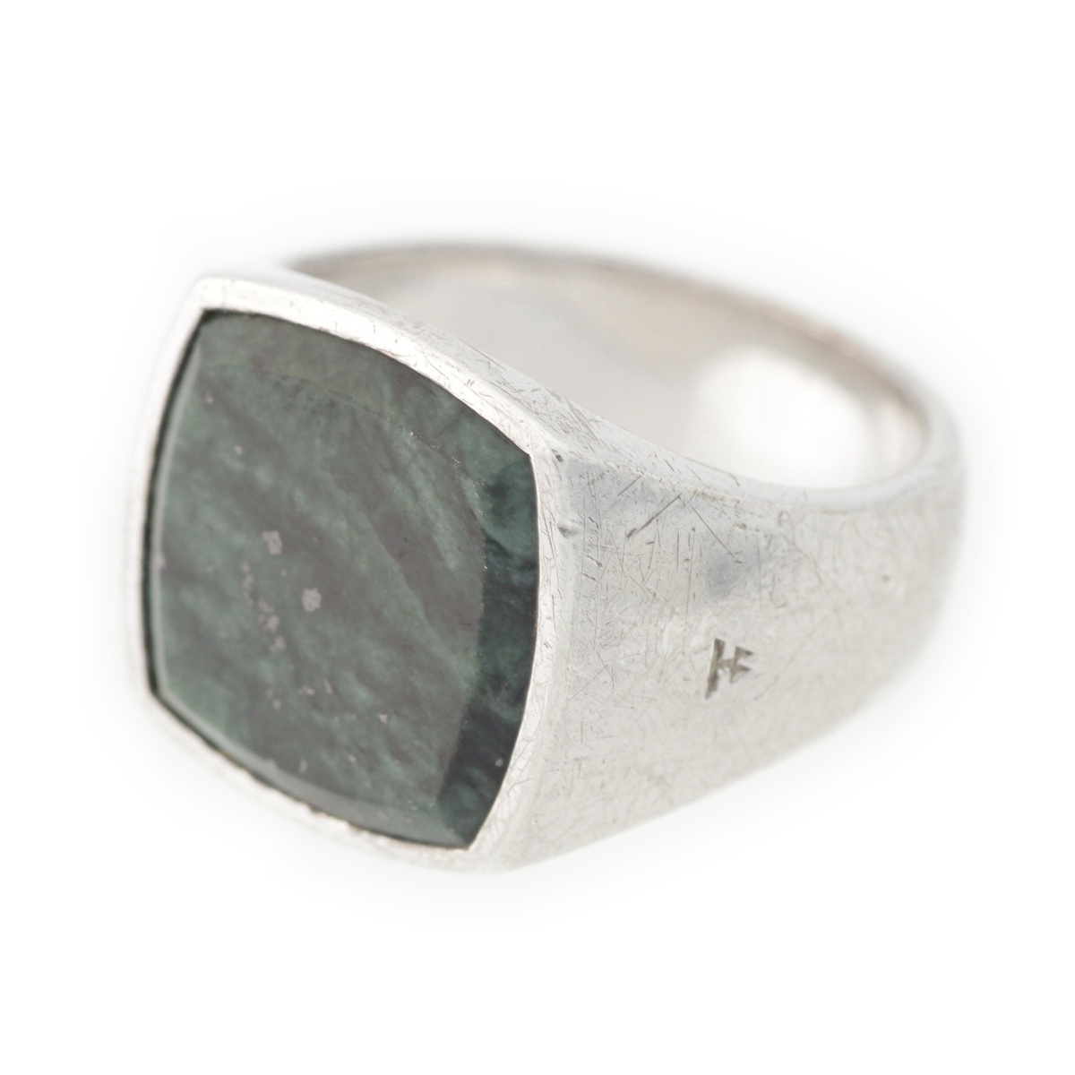 - トムウッド グリーンマーブル クッション リング 指輪 925 シルバー グリーン 16号 13.6g【中古】