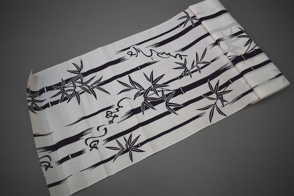 - A39-22【凛々】即決 新古品 本染 相撲 ゆかた反物 白 竹 笹 かいおう ともづな 未仕立て品 ①
