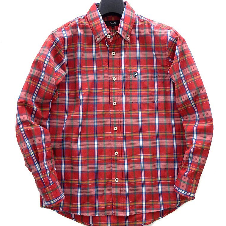 - 新品 ミスターヴァン 25年春夏 ブロード チェック シャツ LL 赤 【VA251047_38_LL】 MR.VAN 長袖 ロゴ ボタンダウン メンズ コットン XL
