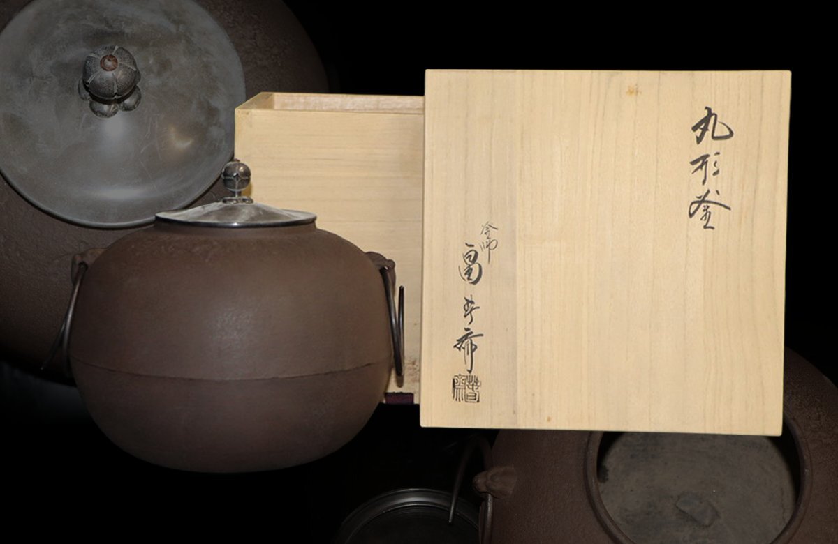- 【江】釜師 畠春斎造 荒肌環付丸形釜 直径22㎝×高さ20㎝ 共箱 古美術品(茶道具茶器湯沸茶釜)X1789 LTtggg