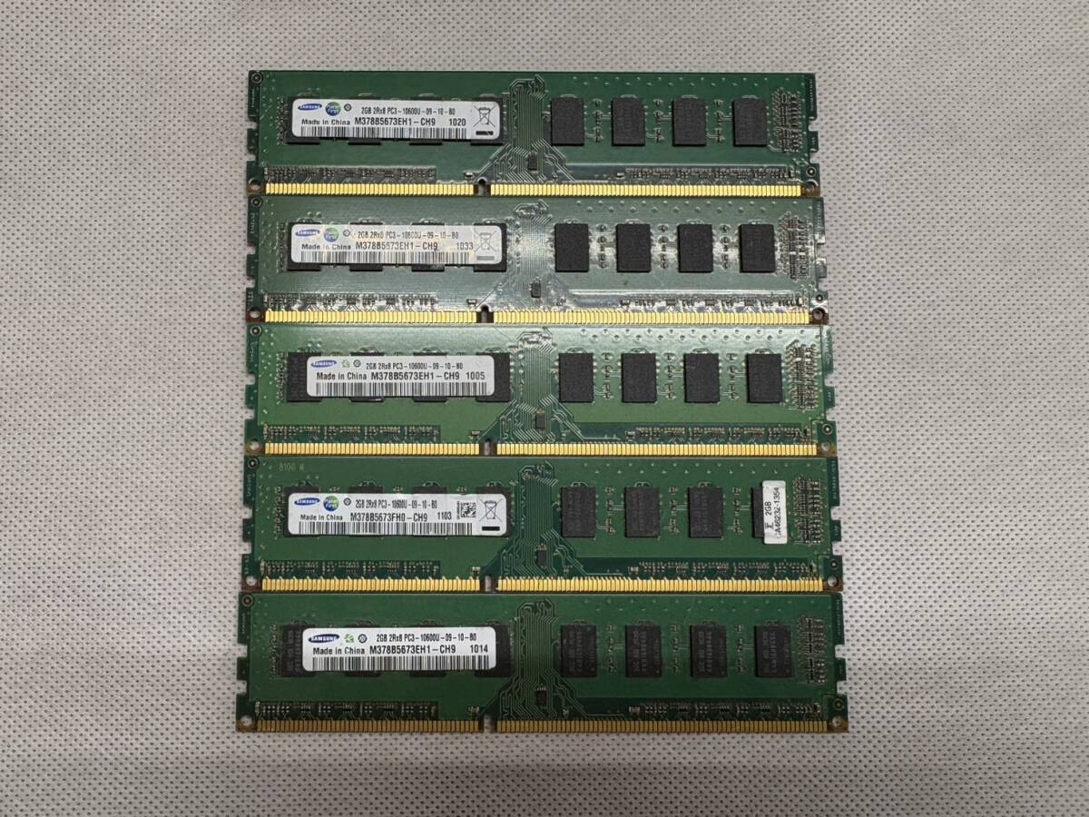 | SAMSUNG デスクトップパソコン用 メモリ DDR3 PC3-10600 2Rx8 2GB x 5枚セット | | | こちらの商品は、実働機より取り出し、保管していたメモリになります。 動作未確認のため、動作保証はいたしかねますので気になる方はご遠慮ください。